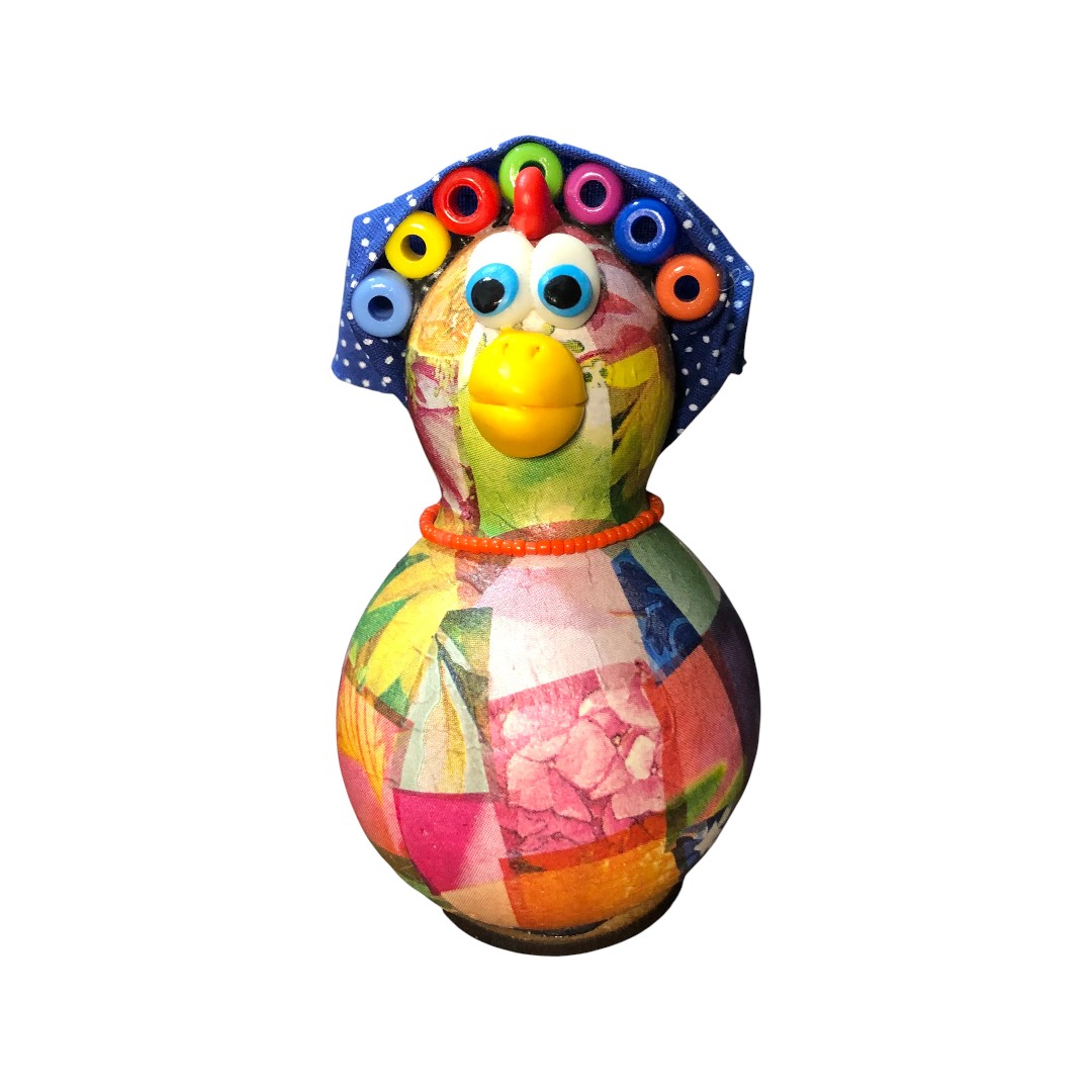Galinha Decorativa em Cabaça com Bobs Coloridos e Lenço – 13 a 15cm